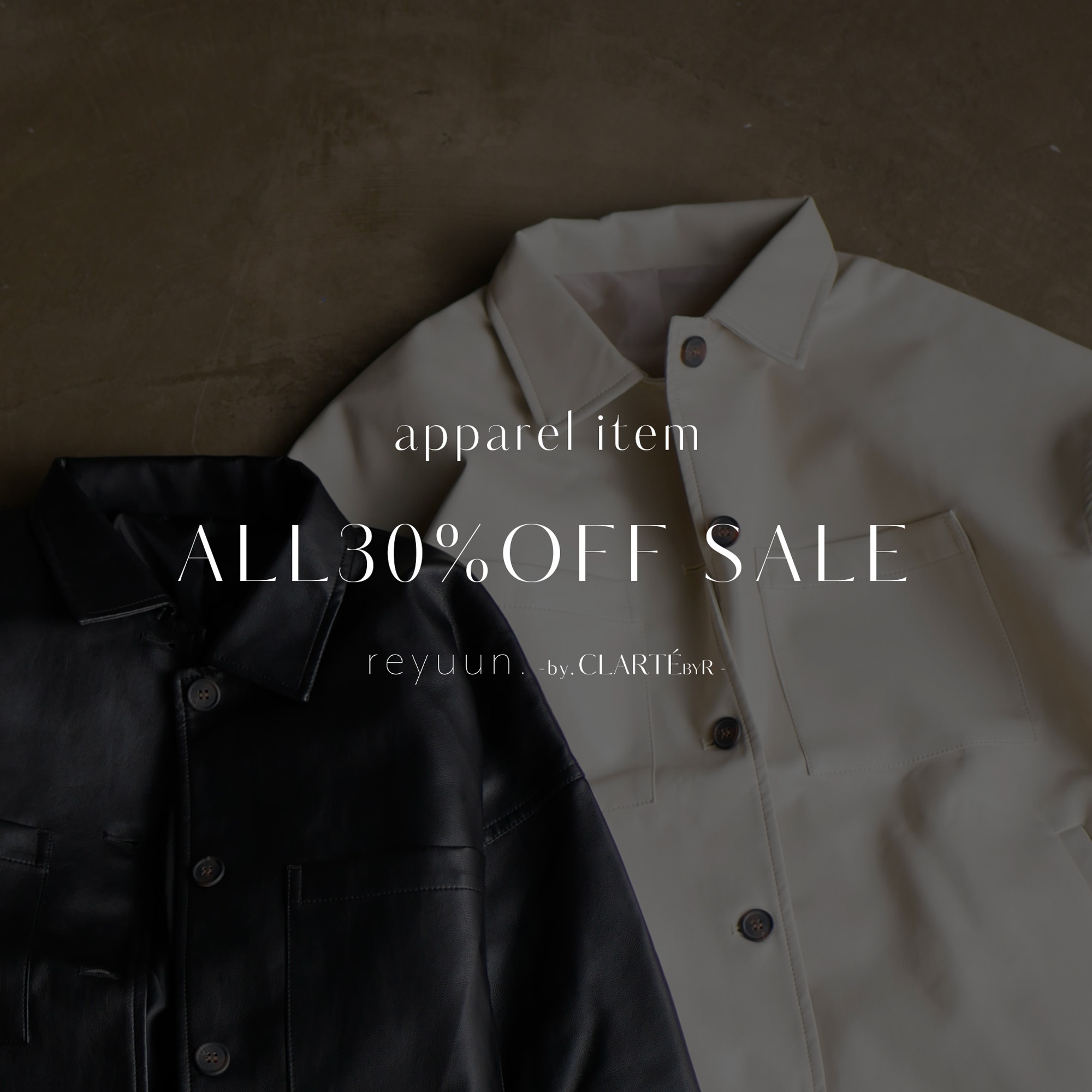 アパレルアイテムALL30%OFFの