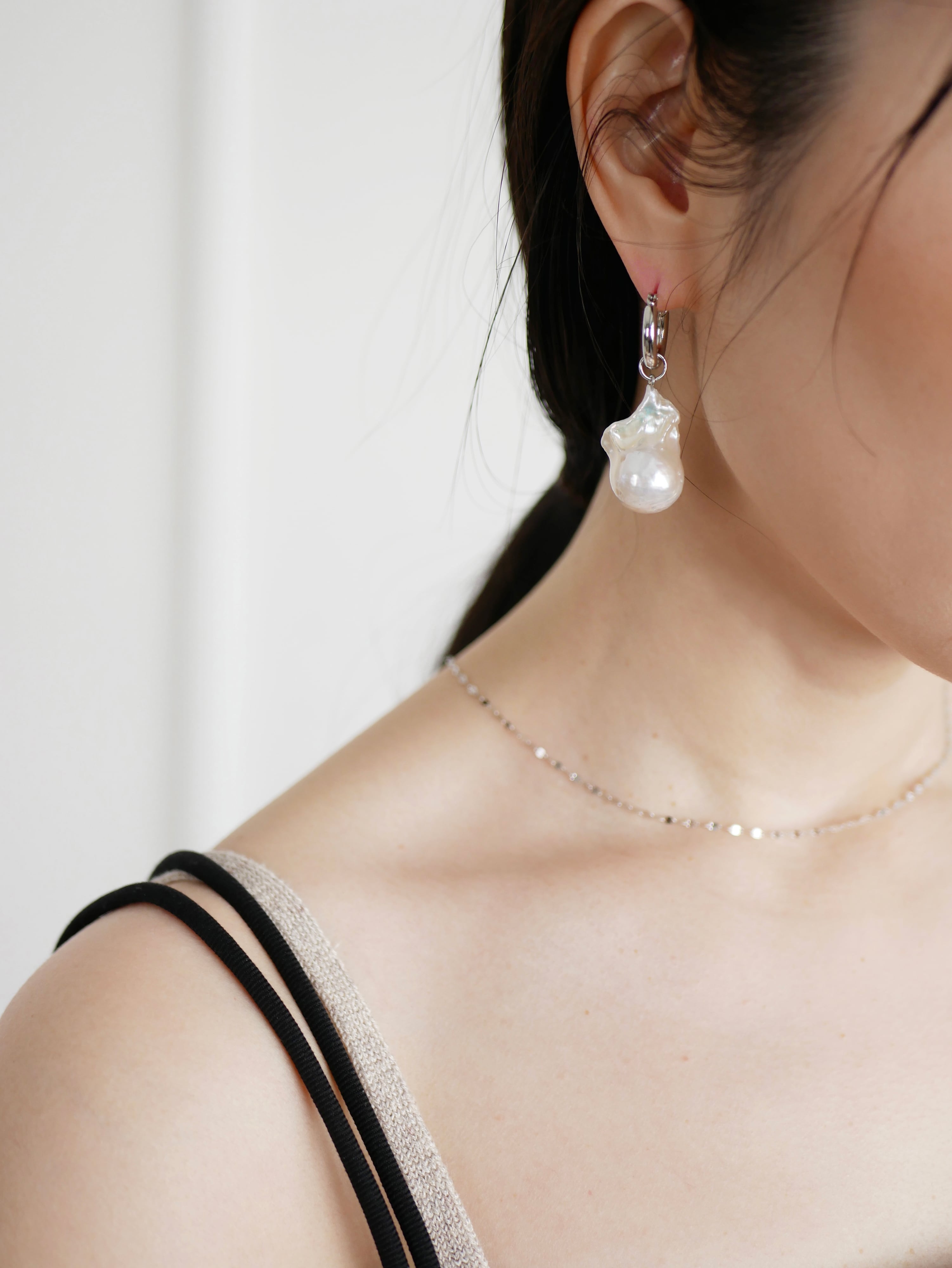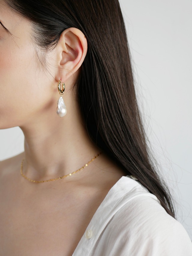 一際目を惹く大粒バロックパール×太めフープの上品アイテム。