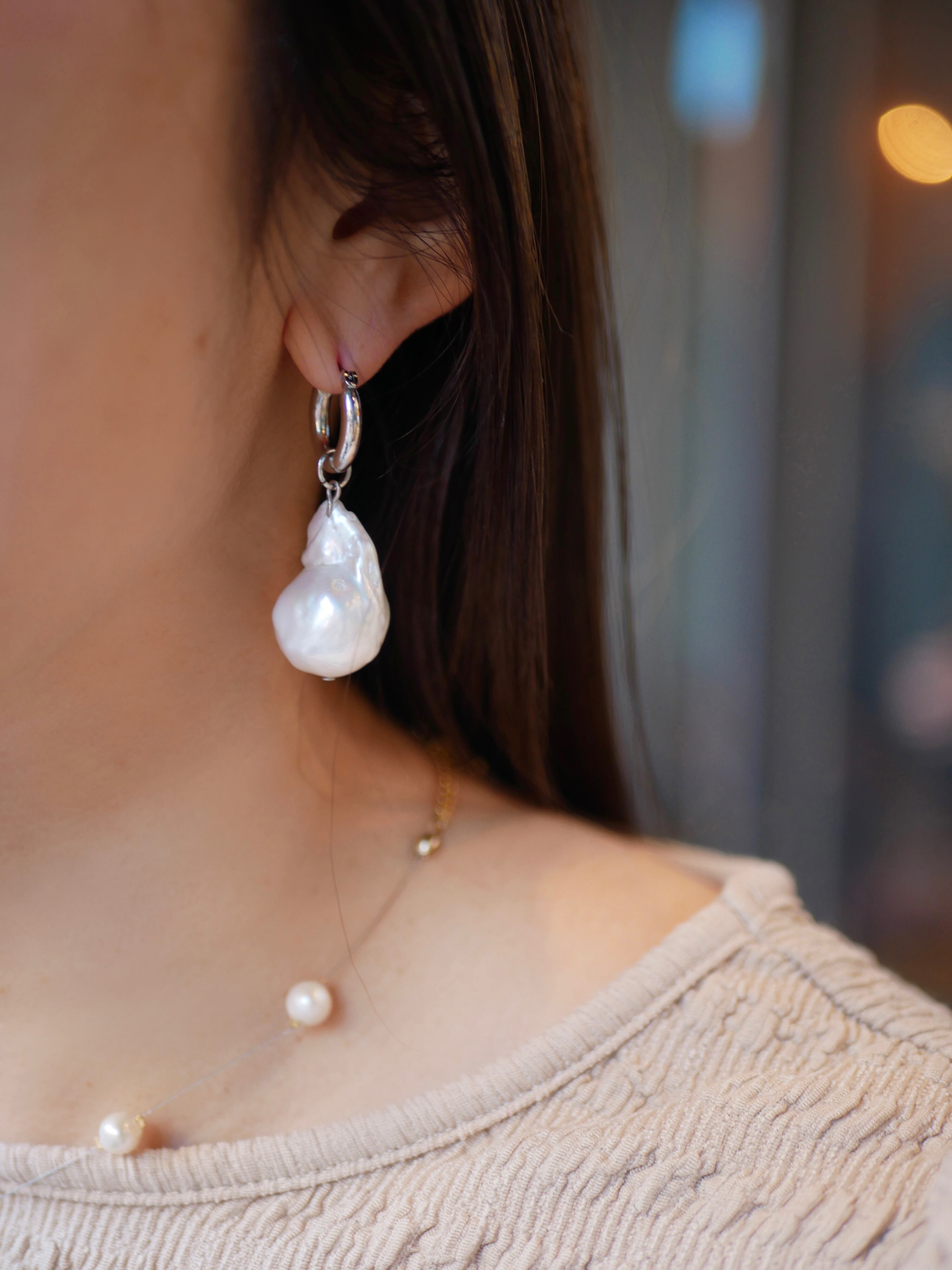 天然バロックパールは、テリ、形、色、ツヤ、一つと同じもののない唯一無二の一点物なので、左右で異なる輝きや形の違いをお楽しみいただきたい特別感の溢れたアイテムです。