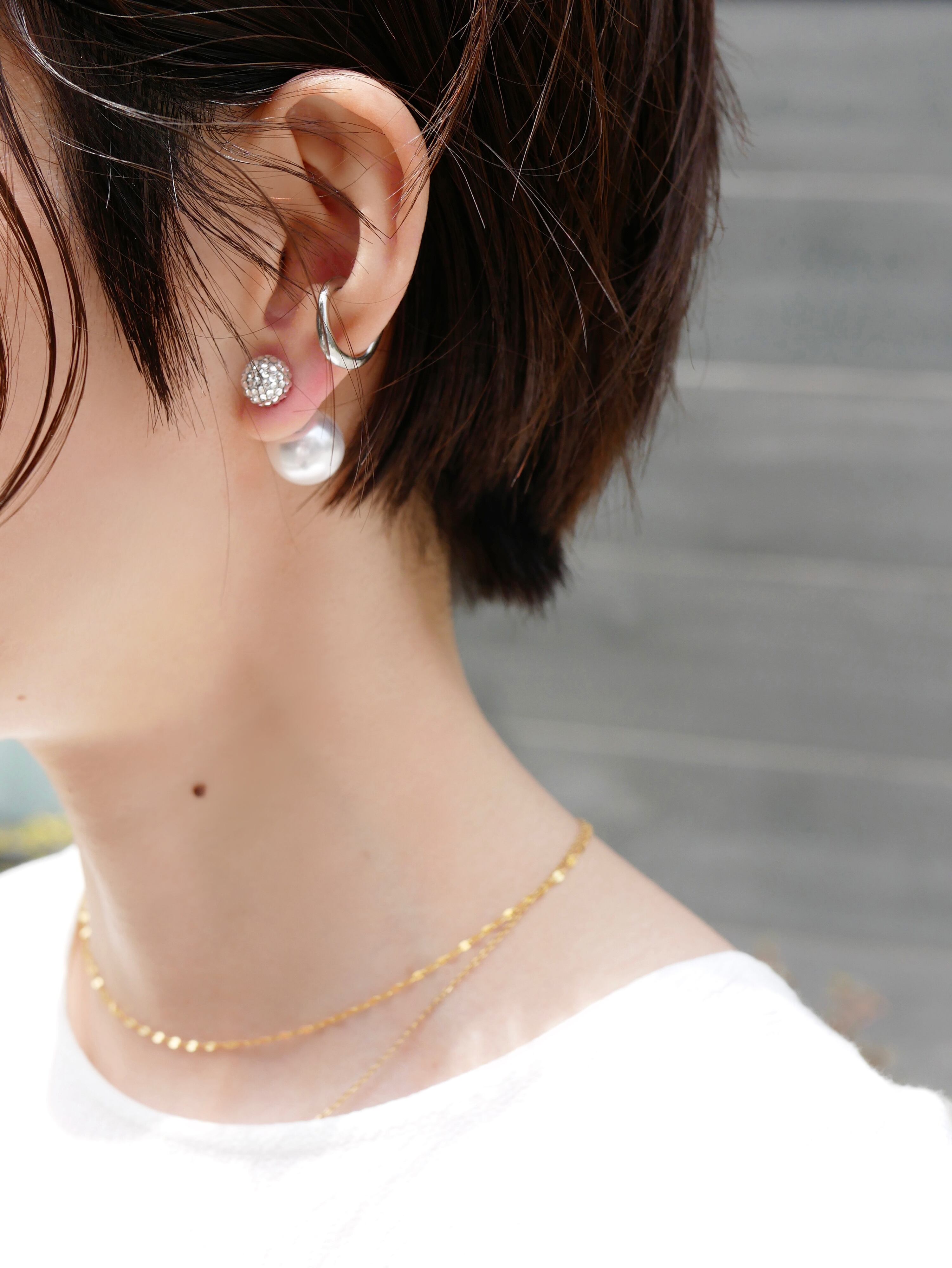 また付属の通常キャッチに変えて、シンプルな一石クリスタルボールピアスとしてのご着用も可能。シーズンレスで様々なコーディネートに合わせてご着用頂ける逸品です!